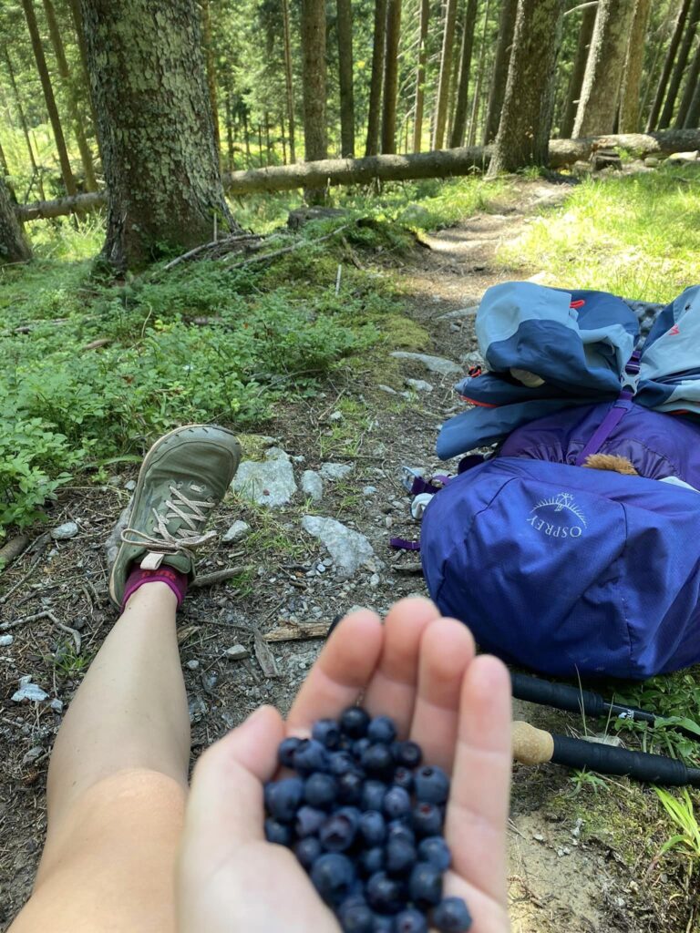 Těšila jsem se na snídani, ale byla nic moc, jen toast s džemem a nějaký kupovaný trvanlivý koláče. Mířila jsem však do obchodu na nákupy. Koupila jsem toho tolik, že krosna vážila rázem jak na počátku treku. Den byl tedy ve znamení neustálých zastávek a svačinek, abych si odlehčila.