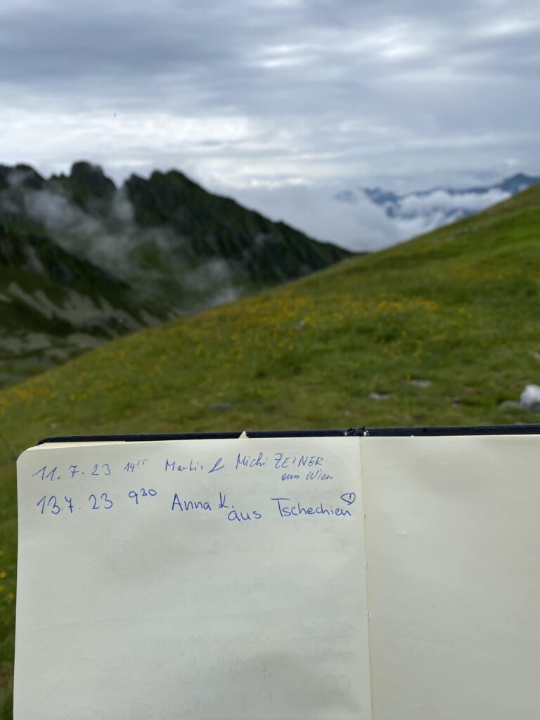 Stala se mi hodně nechutná věc, a to, že mi v noci zalezl slimák do boty, já si ji ráno vzala, šla jsem asi 3 hodiny a furt cítila, že je v tý botě něco špatně…potom jsem objevila vyteklýho slimáka na svý ponožce, která pak nešla za boha vyprat. Na chatě jsem potom potkala Čechy, co jsou tady na pár dní, tak jsme si dali „výborné“ rybízové pivo… Němci jsou trochu čuňata.