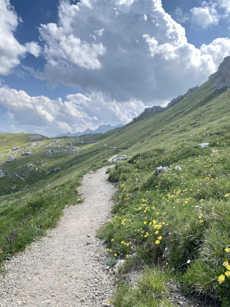 Cesta byla celkem v pohodě, i když hlásili blbý počasí, tak nakonec bylo celý den bez deště i bouřky. Na cestě jsem potkala německý pár cca kolem 70 let, co jdou taky do Benátek a absolutně nechápu, ale strašně moc obdivuju, jak jsou schopný v tomhle věku to dát. Samozřejmě to jdou déle, ale že vůbec ty kopce vyjdou, neuvěřitelný. Seděli jsme pak spolu u oběda, tak mi vyprávěli, jaký trasy už spolu dali a nejsem si jistá, že tohle někdy doženu.
