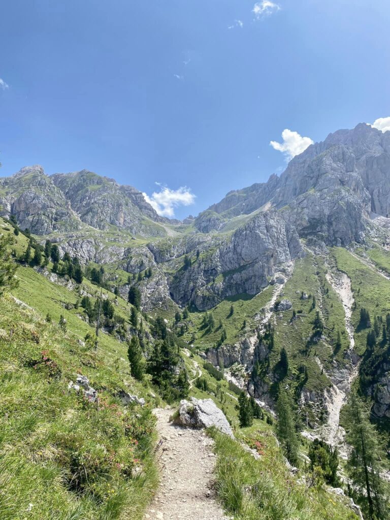Když se ráno probudím a bojuju s tím vůbec vstát, úplně se nepřestávám divit, jak jsou ty nohy už rozchozený. Dneska mi to Hynek potvrdil, když jsem dorazila teď na chatu asi o hodinu dřív, a to když oni dva ráno vycházeli, tak já šla teprve na snídani, a potom jsem si ještě dala odpoledne hodinovou pauzu na oběd. I když mě to bolí jako prase a oblečení v tomhle vedu mohu ždímat už po 10 min chůze, tak do těch kopců fakt letím. Dneska jsem si konečně dala svůj oblíbený trhanec, vypila k tomu již standardně litr limonády a jsem pro dnešek najeděná. Na záchodě v restauraci jsem ukradla dvě vložky a jeden tampon, mám pocit, že mám už případně zásobu i na dva dny, pokud mé dny brzy přijdou. Jinak jsem se konečně dostala do Dolomit, takže užívám asi poslední týden na horách.