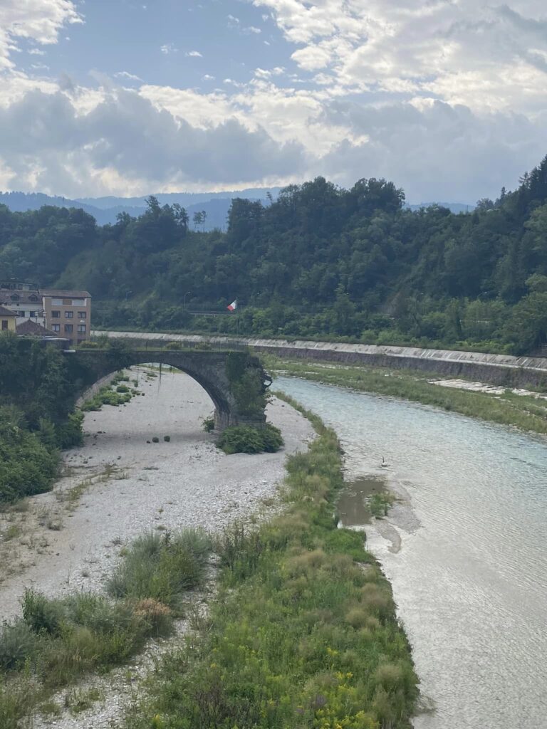 Dneska jsem ráno krásně zmokla, abych zmokla totálně i večer. Trochu mě děsí dost velká bolest chodidla, asi to je z přetížení a debilních 20km cesty po šutrech, ale nejde se mi lehce a rychle. Dneska a snad i zítra chci jít kolem 20 a dát tomu víc odpočinku. Při odpolední pauze si ke mně přisedlo 5 cyklistů a vyptávali se, co tady dělám. Když jsem řekla, že jdu do Benátek, jeden z nich řekl: Don’t you wanna take a bus? Or you don’t have money or what? No nechápali, že to někdo může dobrovolně jít. Když jsme se loučili, dali mi do ruky pivo, ať si zpříjemním cestu…asi už po dvou dnech vypadám jak bezďák bez peněz.