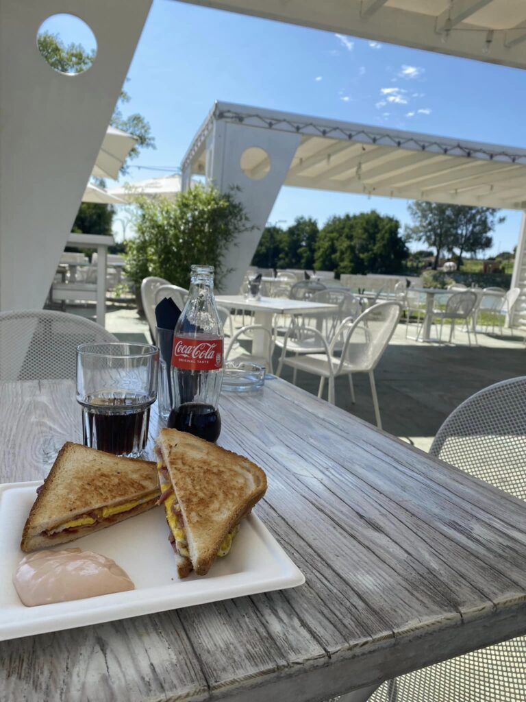 Zjistila jsem, že je velká chyba plánovat trasu po 3 sklenkách proseca, jelikož si nedovedu představit, v jakým vesmíru bych střízlivá dokázala vymyslet tuto mňamku. Opravdu dlouhý den. Pauzu jsem si dala v nějakém autostopu, kde měly i dámy svou místnost, kam si vodily kamioňáky a prostě řidiče. Pozorovat je bylo výborný. Paní servírka byla ale strašně milá a fajn, asi není moc zvyklá na dámskou klientelu, co by si chtěla opravdu jen objednat pití a jídlo.