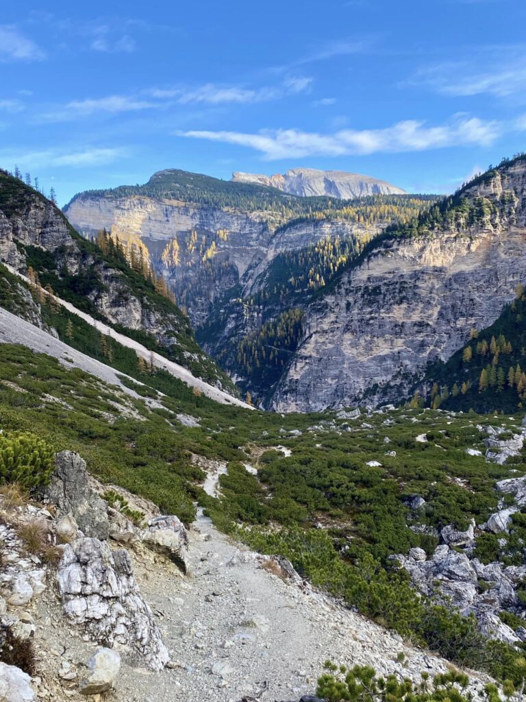 A zase ty úchvatné Dolomity. Měla jsem akorát podzimní prázdniny, tedy 6 dní volna k lezení po horách. Nejednalo se o nějakou oficiální trasu, sama jsem si naplánovala okruh tak, abych toho viděla co nejvíce z okolí kolem Cortiny. Částečně jsem kopírovala i trasu tradiční Alta Via. Šla jsem na konci října, což znamenalo všude liduprázdno a zavřené všechny horské chaty. Trasu jsem si reálně nakonec trochu zkrátila, ale níže je ke stažení v původní podobě.